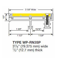 Type WP-RN3-SP is 3 1/8″ wide x 1/2″ thick. Lengths are made to order. Maximum length is 8’0″ in one section (over 8’0″ will be made in equal sections).